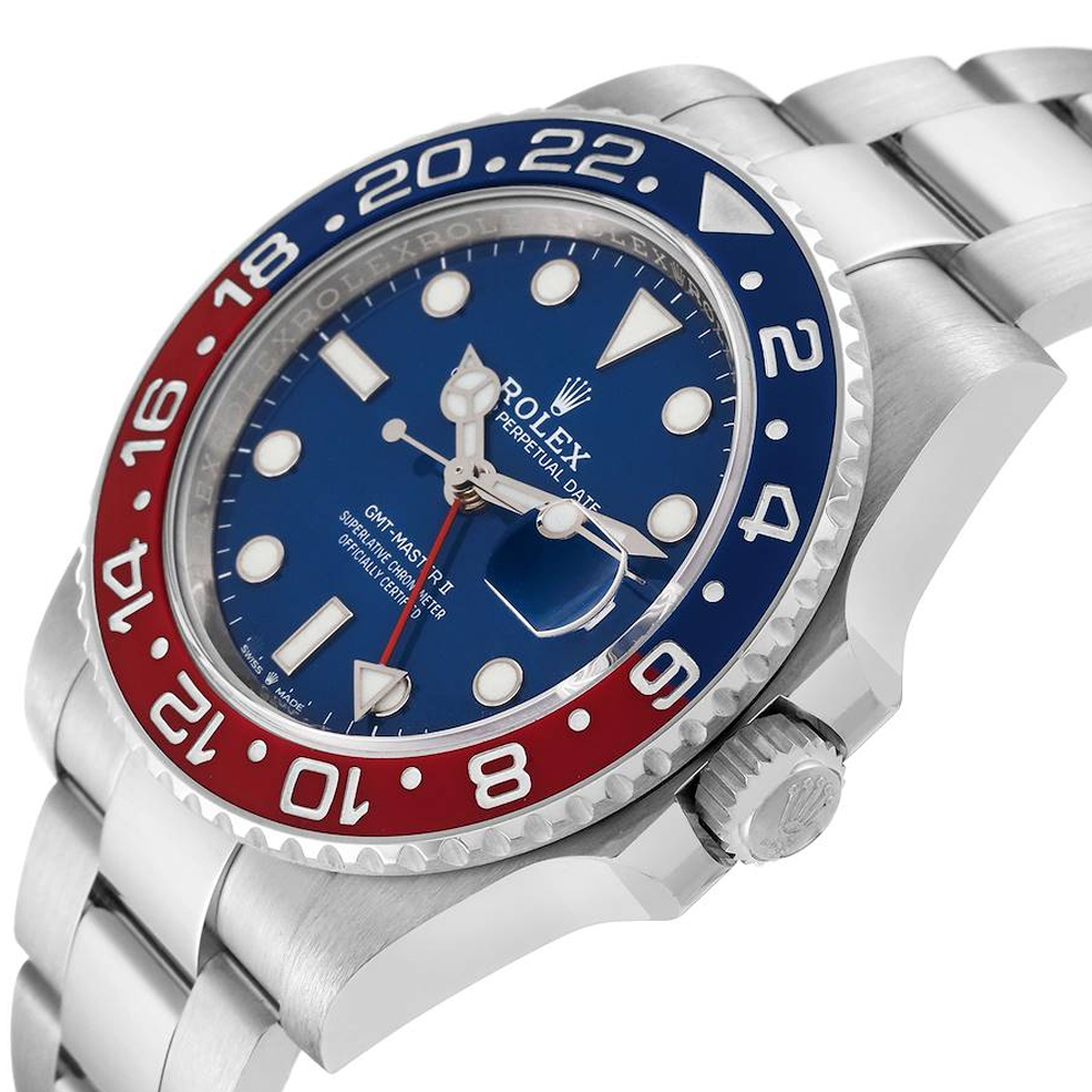 | Bezel: | 18k white gold bidirectional rotating 24-hour graduated blue and red Pepsi bezel. |