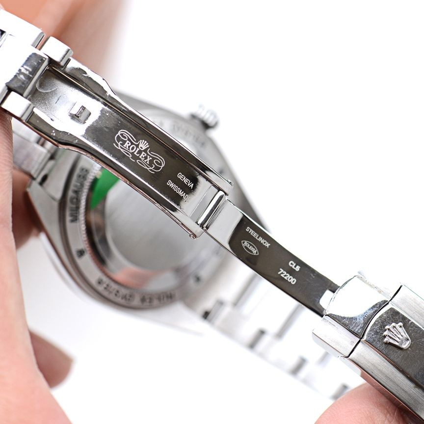 Swisstime.sr Milgauss Swiss Replica watches looks, feels and have the exact same dimensions as the original Rolex using incredible precision down to a nanometer! So the weight is exactly the same with the original Rolex and all watch parts inside/out are interchangeable with a genuine part. Our Rolex Milgauss replica watches features a lightning bolt shaped seconds hand and a capital letter “B” with an arrow engraved on the inside case back anti-magnetic movement shield.
